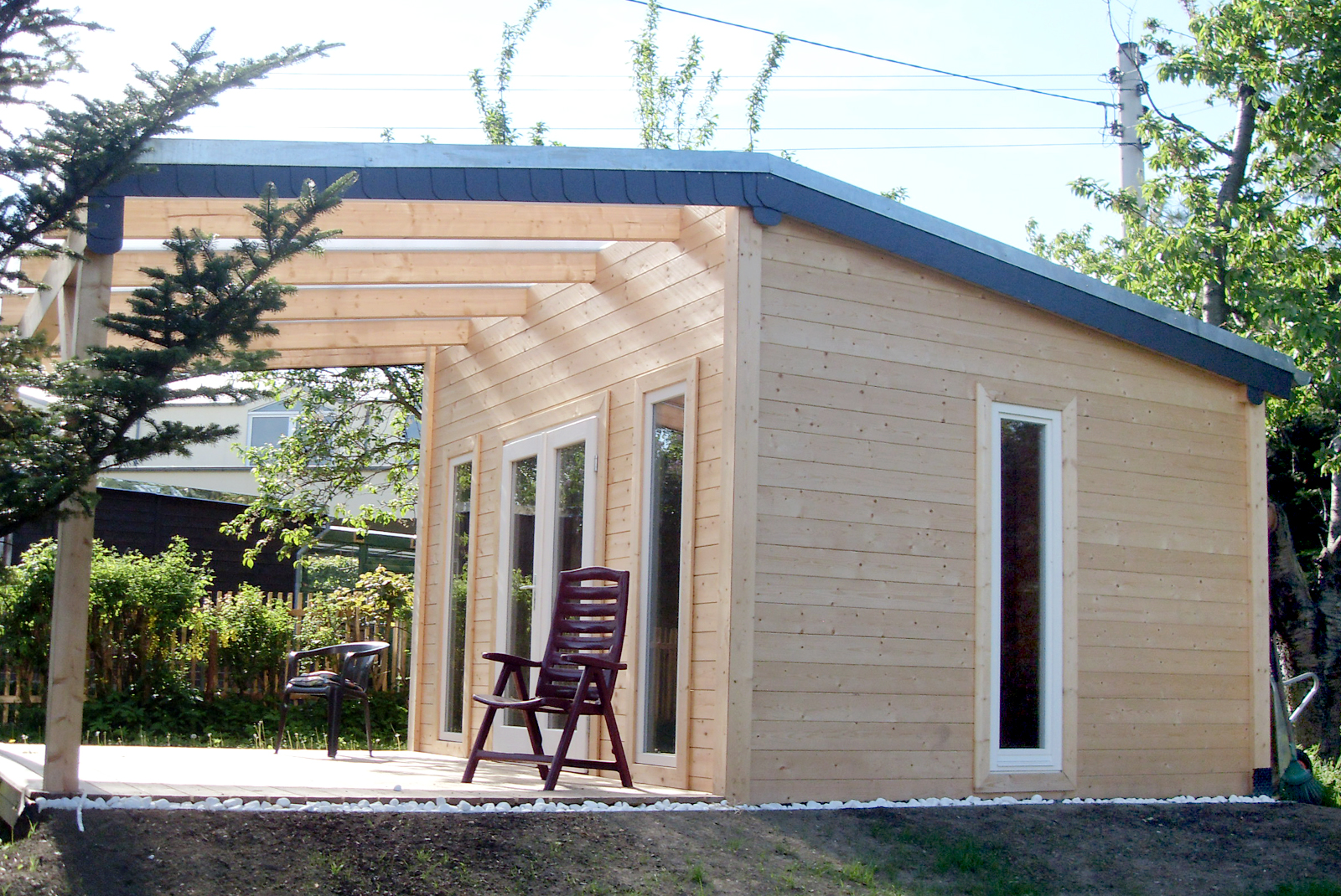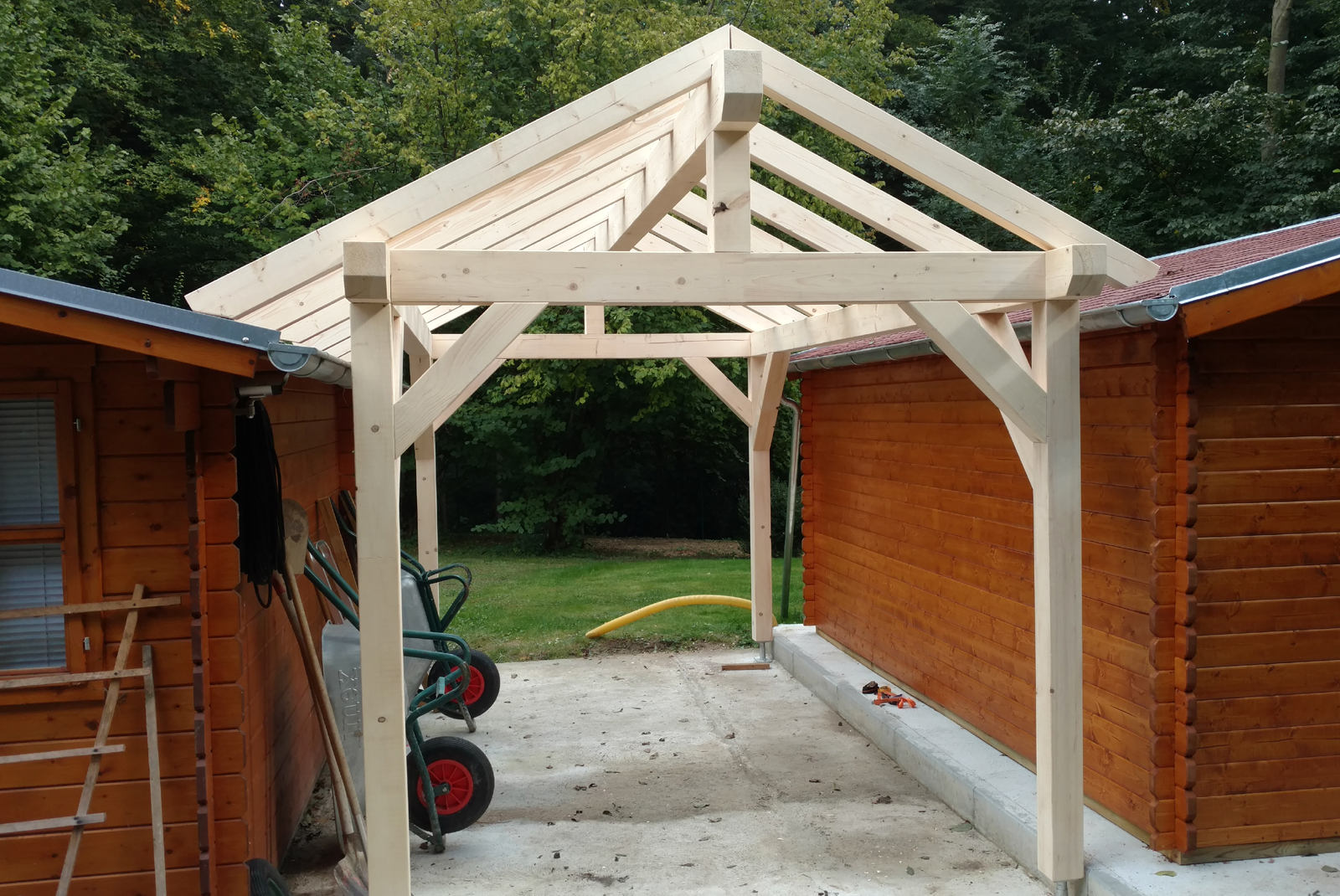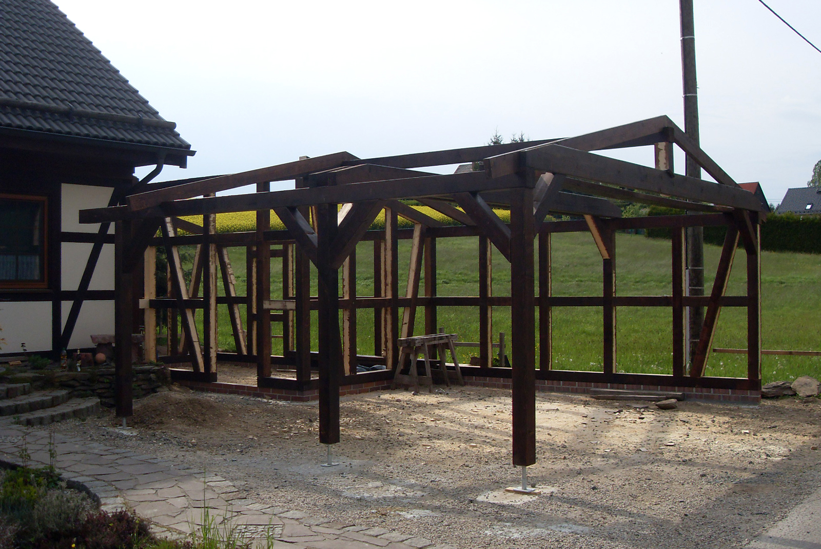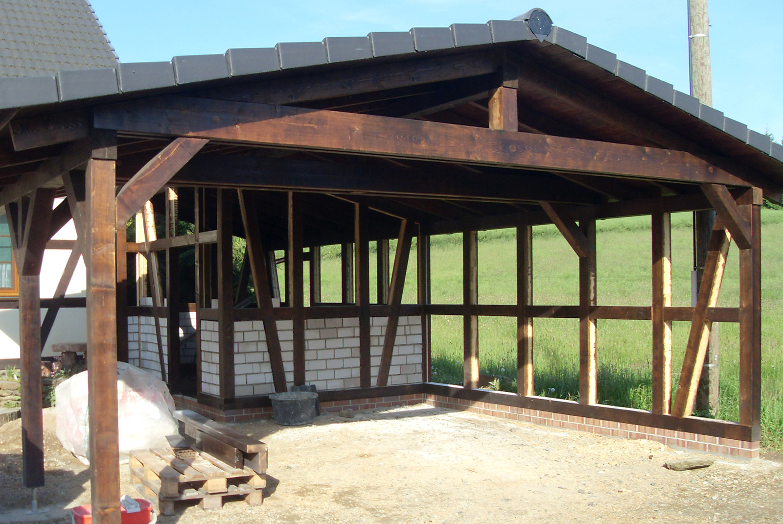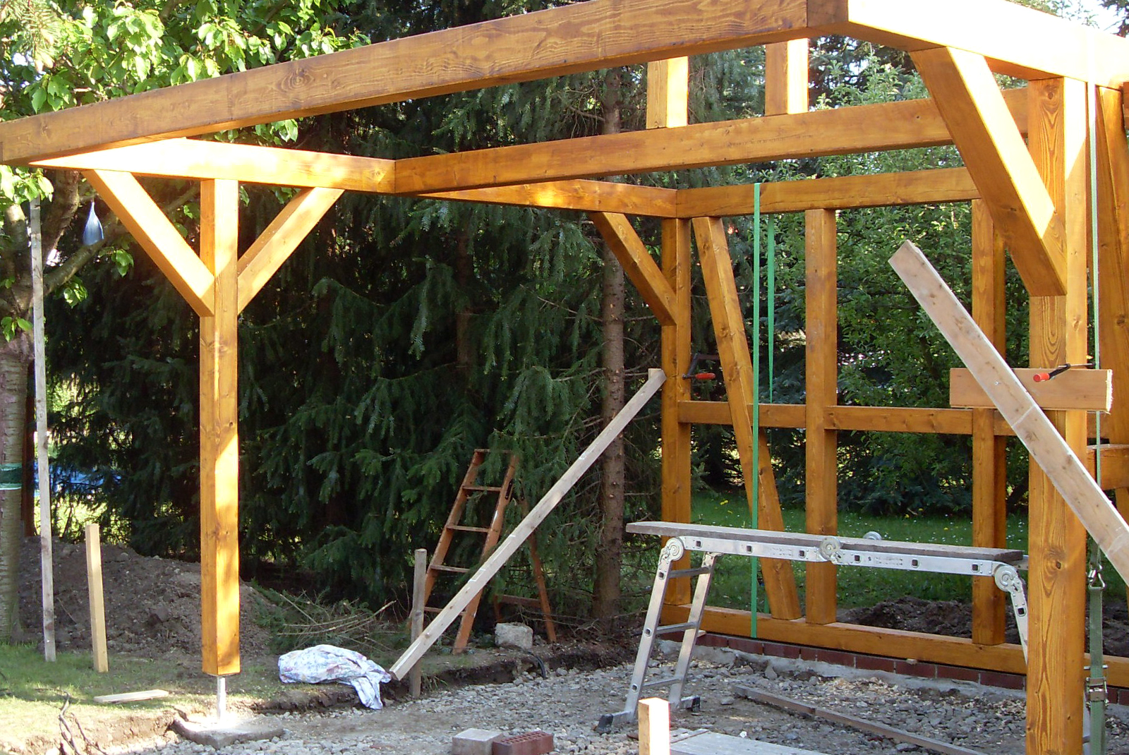 Die Herstellung und das Errichten von Holzkonstruktionen für ganze Bauwerke wie Fertighäuser, Gartenhäuser, Geräteschuppen, Pavillons, Carports, gehören ebenso zu unseren Aufgaben.