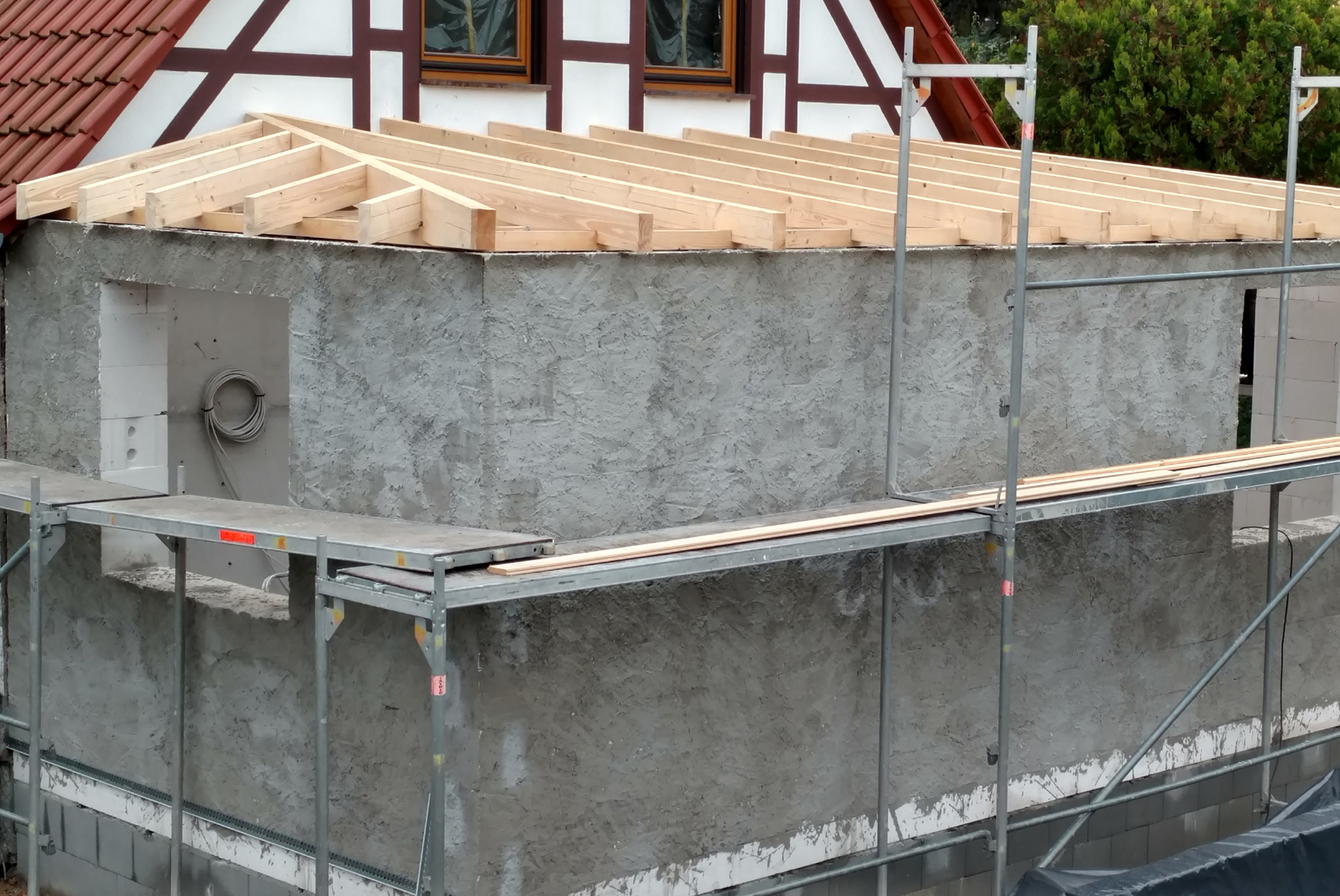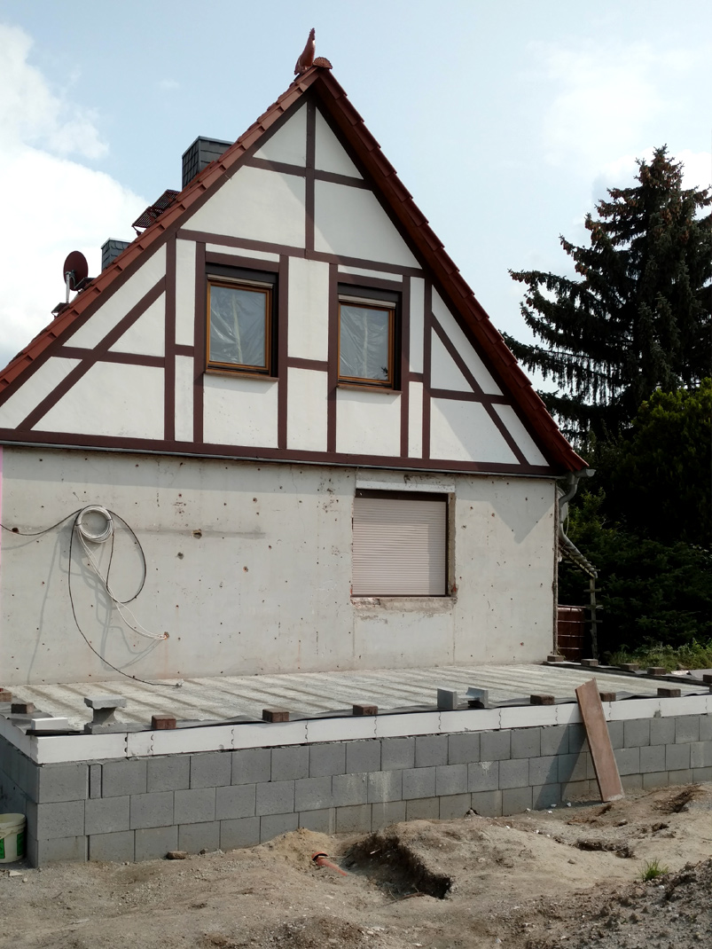 Sie wollen Ihr bestehendes Eigenheim mit einem Anbau vergrößern oder eine Etage aufstocken? Dann sind Sie bei uns richtig. Wir übernehmen für Sie die kompletten Arbeiten beim Hausumbau, angefangen vom Gießen der Bodenplatte als Fundament über das Mauern des Rohbaus Stein auf Stein bis hin zur Errichtung des Dachstuhls.